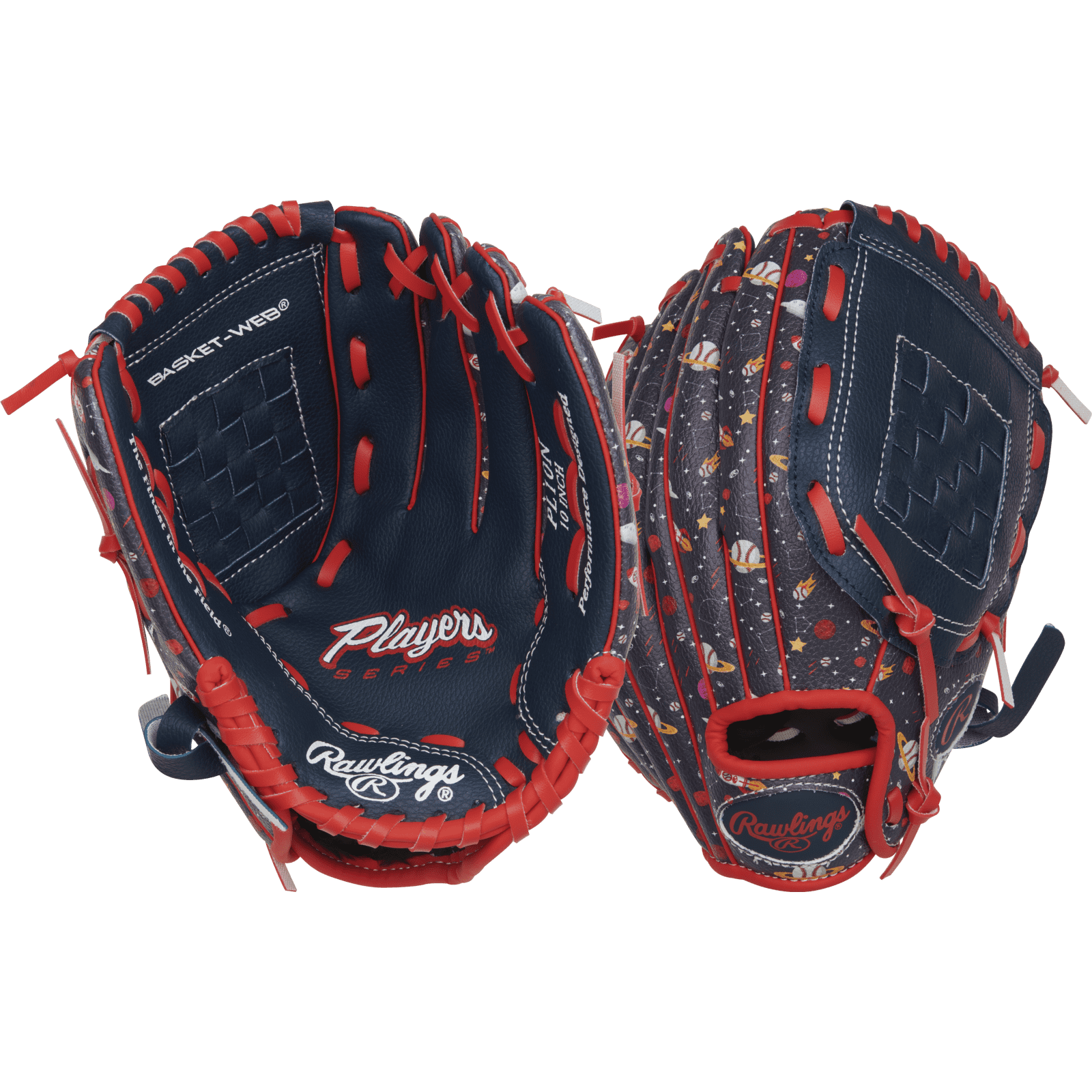 Your ballplayer will be beyond the moon when they hit the field with this Space Print 10-inch Players Series glove from Rawlings! Featuring a totally unique galactic design on the outer shell, this glove is sure to be a favorite. Plus, the Players Series is designed with an ultra-comfortable hand opening and plenty of shock-absorbing padding, so you don't need to be afraid of sting. In addition, the wide-design heel makes for an easier close and better glove control for small hands. Help your youngster fall in love with their glove and get this Rawlings Players Series 10-inch Space Print glove today!