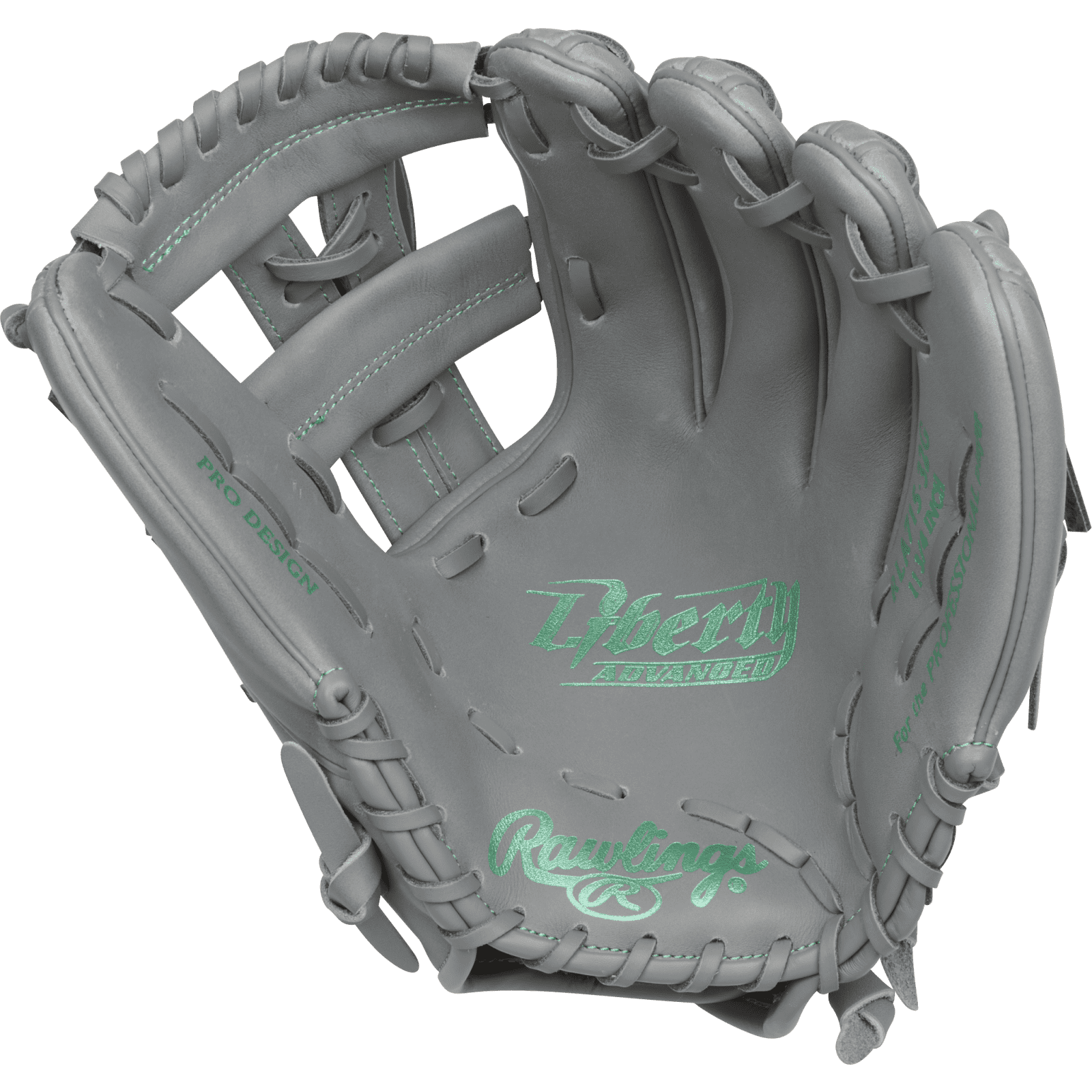 This new Rawlings Liberty Advanced 11.75-inch softball glove is going to be an infielder's best friend! This is the first Liberty Advanced model to feature Rawlings' split single-post web, which has become a favorite for infielders thanks to its perfect balance of flex and stiffness. This not only helps you feel confident snagging hot shots in the hole, but also promotes quick transfers needed to nab speedy baserunners. This glove also comes in a gray colorway with distinctive green accents, making it one of the most stylish gloves on the field. Plus, like all Liberty Advanced gloves, this gamer features an adjustable pull-strap back so you can get a perfect fit no matter your hand size. When you combine that with the shock-absorbant padding and quality, full-grain leather palm shell, you get a glove that's easy to break-in and ultra comfortable to use. Get your Rawlings Liberty Advanced 11.75-inch softball glove today!