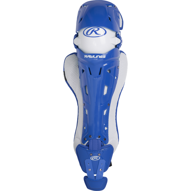 Whether crouching behind the plate, running to backup a play or facing a charging base runner, these Rawlings Mach baseball catcher leg guards provide maximum flexibility and comfort without sacrificing protection and exposing your knees or legs to possible injury. Patent Pending Intelligent Knee Positioning technology allows for a low-profile, full conforming fit. Quick adjustable Velcro straps with silicone backing prevent strap movement during use. Adjustable foot and toe flaps for full foot protection. Removable thigh and shin pads for easy cleaning. With the unpredictability that comes with playing behind the plate, safeguard your legs with these ultimate protectors. NOCSAE approved.