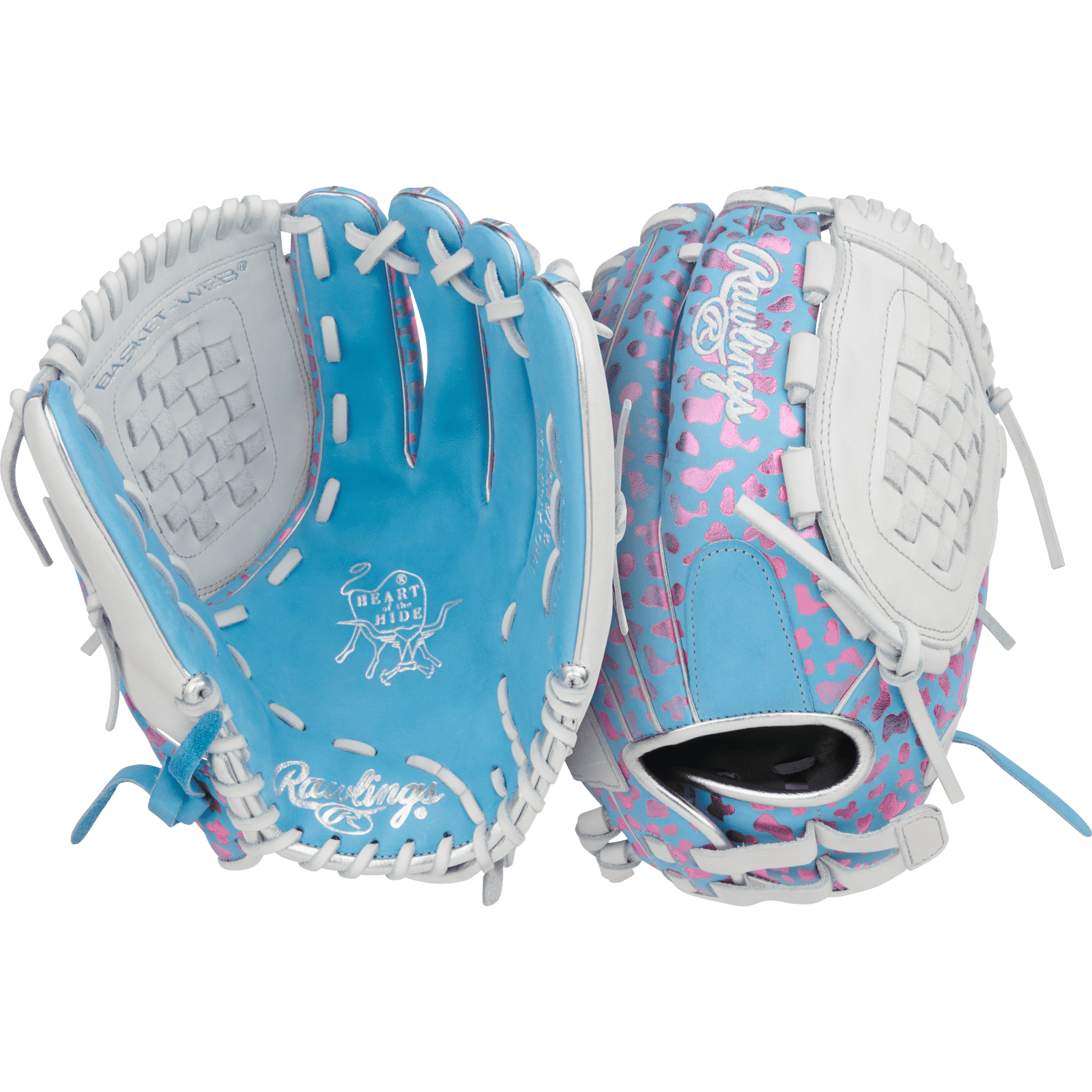 Its 12.5-inch length and basket web design make it perfect for tracking down fly balls and securing tough catches. Plus, the Columbia Blue, White, and Pink colorway makes a bold statement every time you flash the leather.