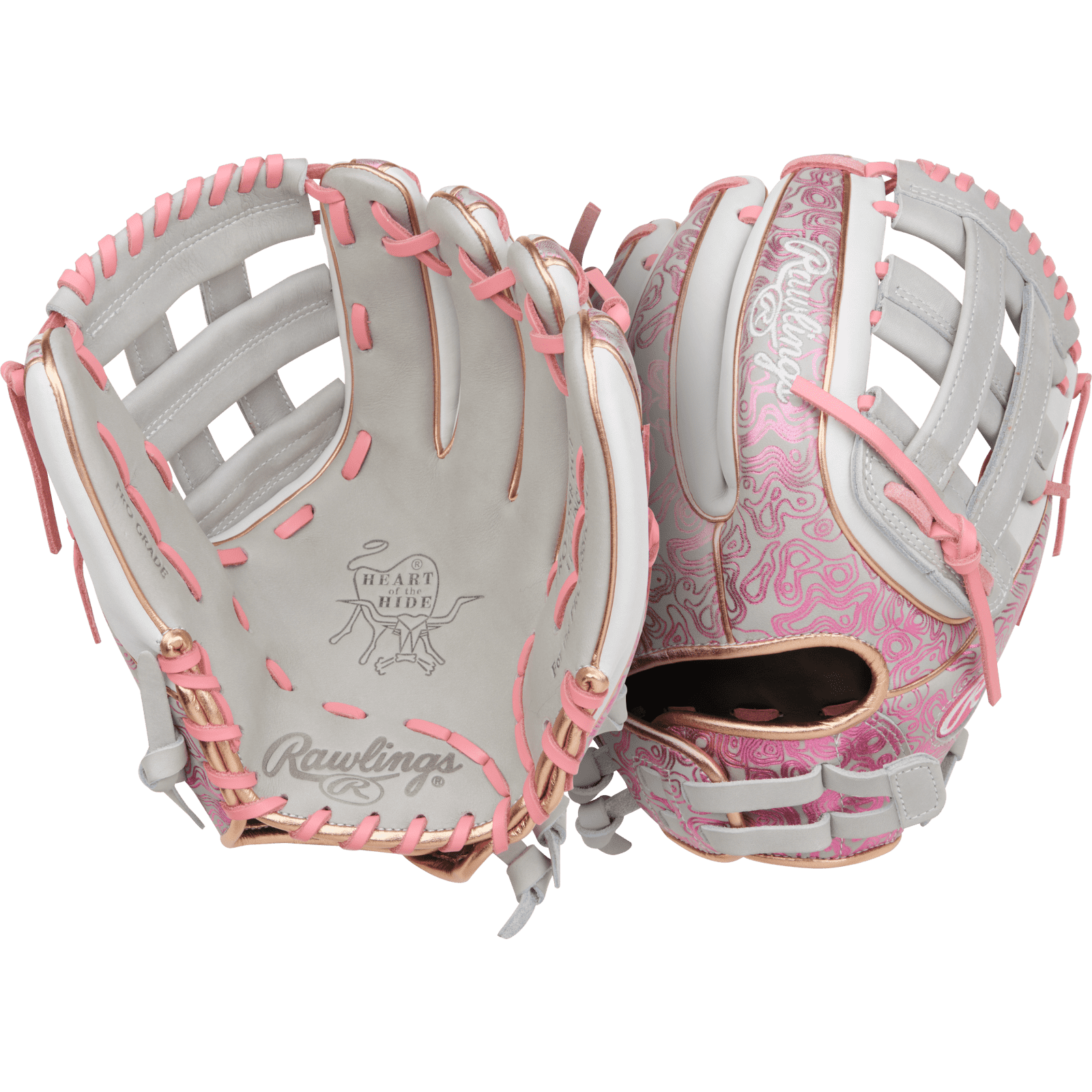 Make every play count with the Rawlings Heart of the Hide 11.75-Inch infield softball glove, crafted with Pro H™ Web and standout gray and pink style.