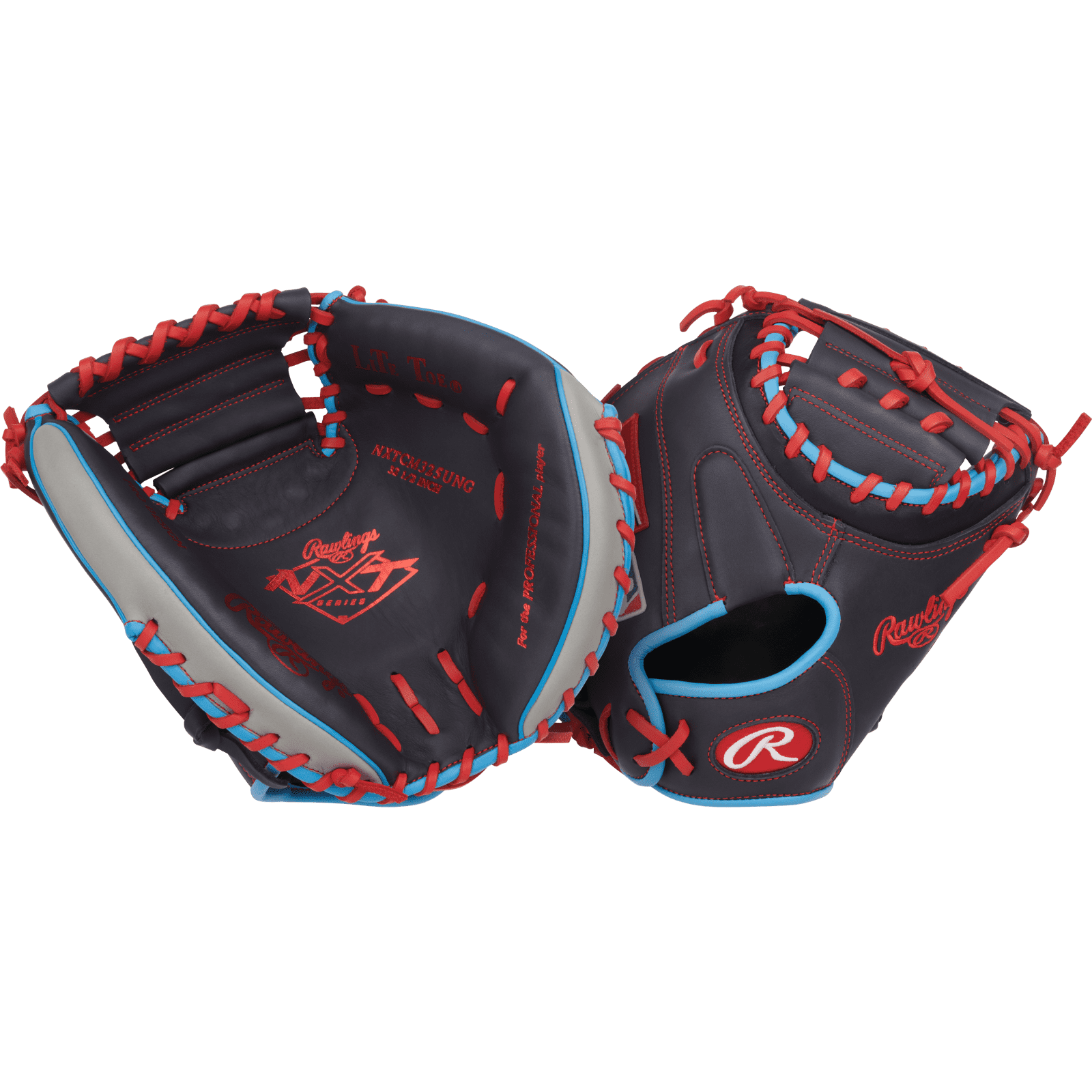 Finished in a striking Navy/Gray design with red lacing, the Rawlings NXT 32.5-Inch Catcher’s Mitt offers the perfect blend of style, fit, and performance for rising stars behind the plate.