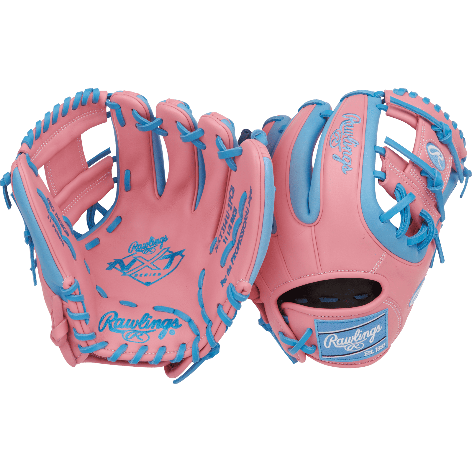Dominate the diamond with the Rawlings NXT 11.5-Inch Infield Glove, crafted for youth players with ContoUR Fit and a flashy Pink/Columbia Blue design.