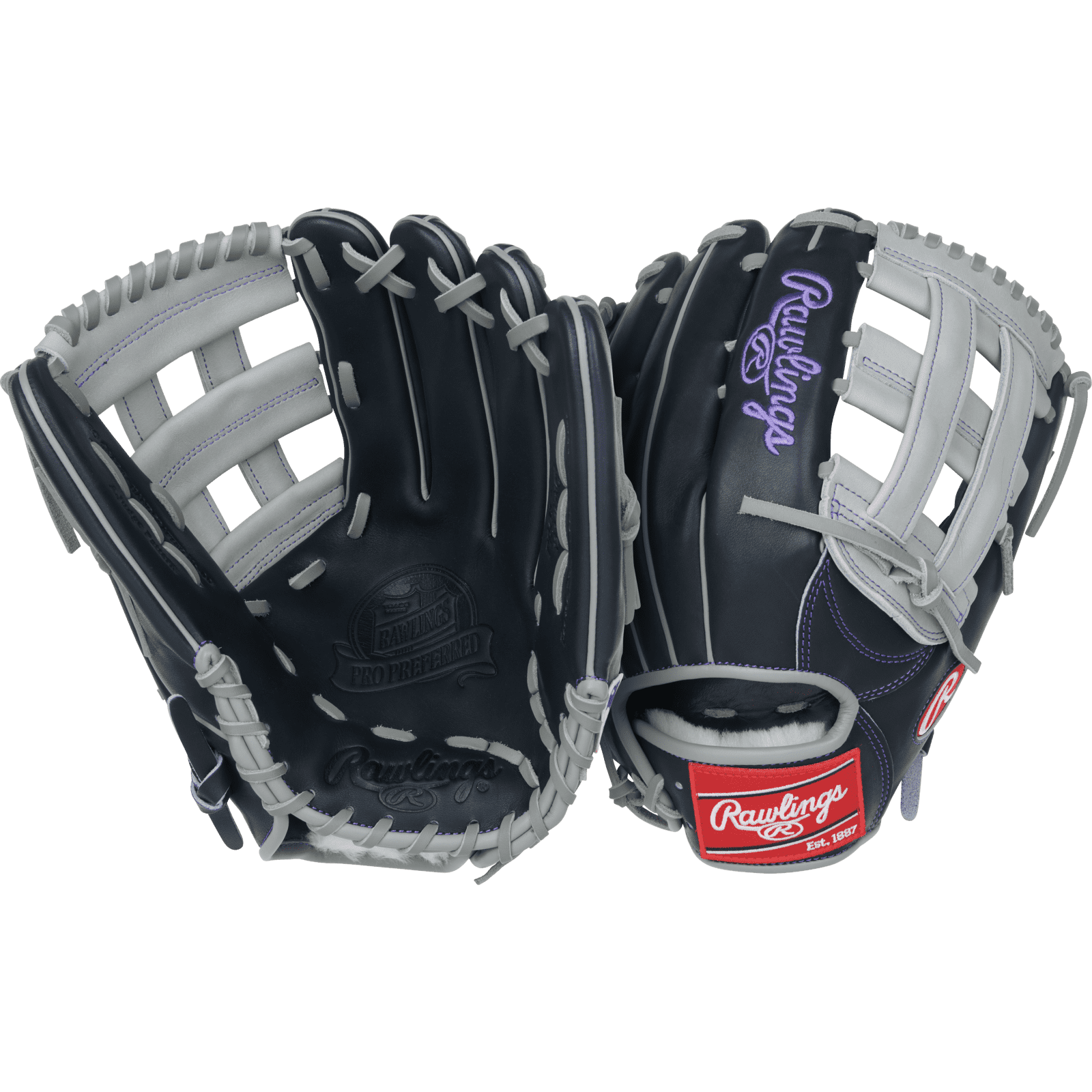 Play like a pro with this Rawlings 12.75-Inch Pro Preferred Outfield Glove, built using the trusted game-day pattern worn by Aaron Judge. Featuring a sleek Navy and Gray colorway, this glove pairs big-league style with world-class performance.
