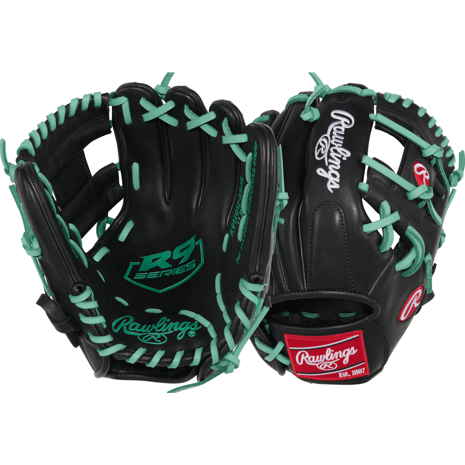 With bold mint accents and youth-focused fit, the Rawlings R9 11-Inch Glove helps young players field with comfort and control.