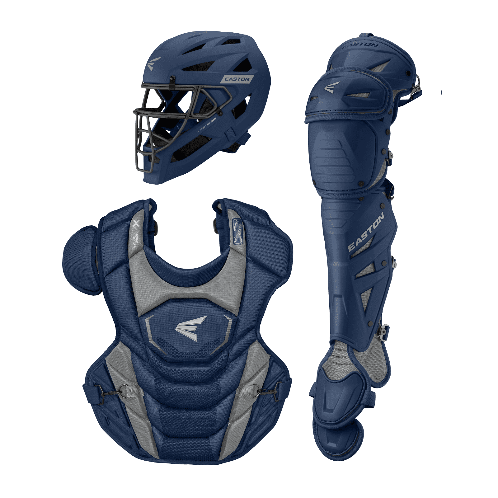 Gear up with Easton Mav X catcher’s gear — lightweight helmet, secure chest protector, and flexible leg guards built for elite protection and comfort.