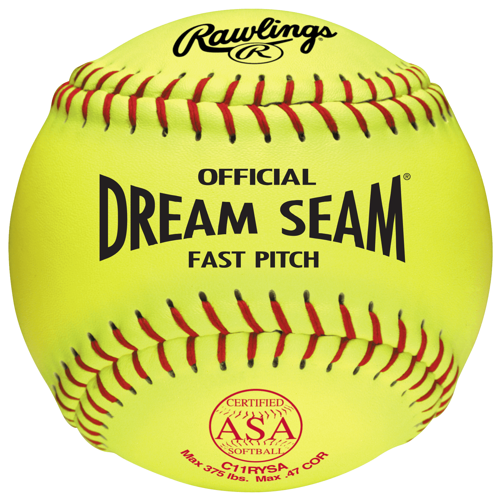 Worth's Official 11" fastpitch softballs has red stitching and are approved for play in the ASA. These Worth's Dream Seam softballs has a raised seam with a high density cork and ProTac synthetic leather cover.