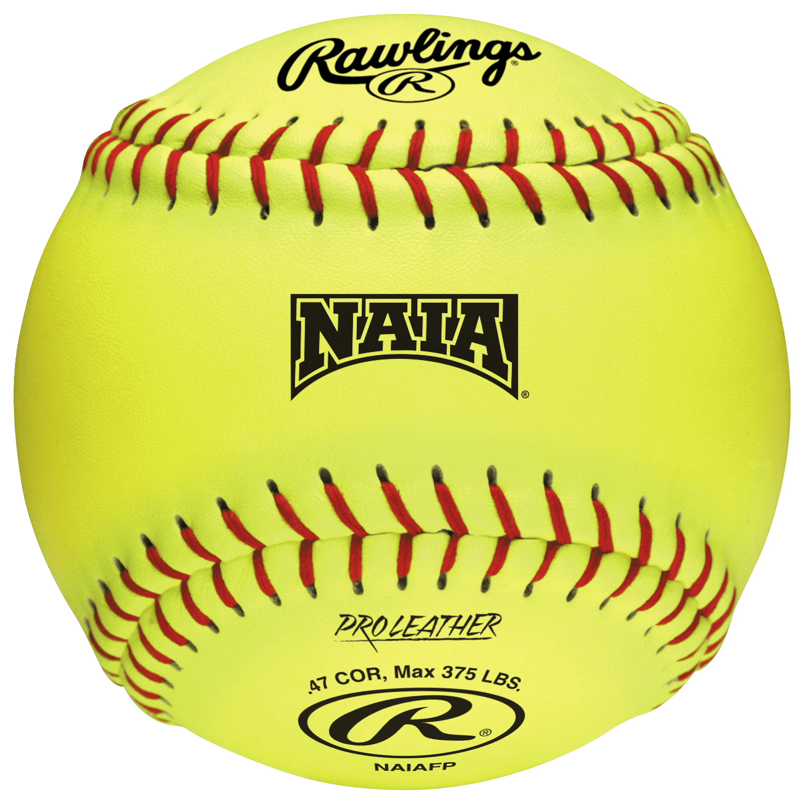Rawlings is proud to be the official softball equipment supplier of the NAIA. These are the new fast pitch softballs to be used for the 2024 season on both the NAIAFP and NC12L. This 12" fastpitch softball has a .47 C.O.R. and 375 lbs compression with red stitching. These softballs have a raised seam with a polyurethane core and Pro Leather cover that gives just the right amount of tack.