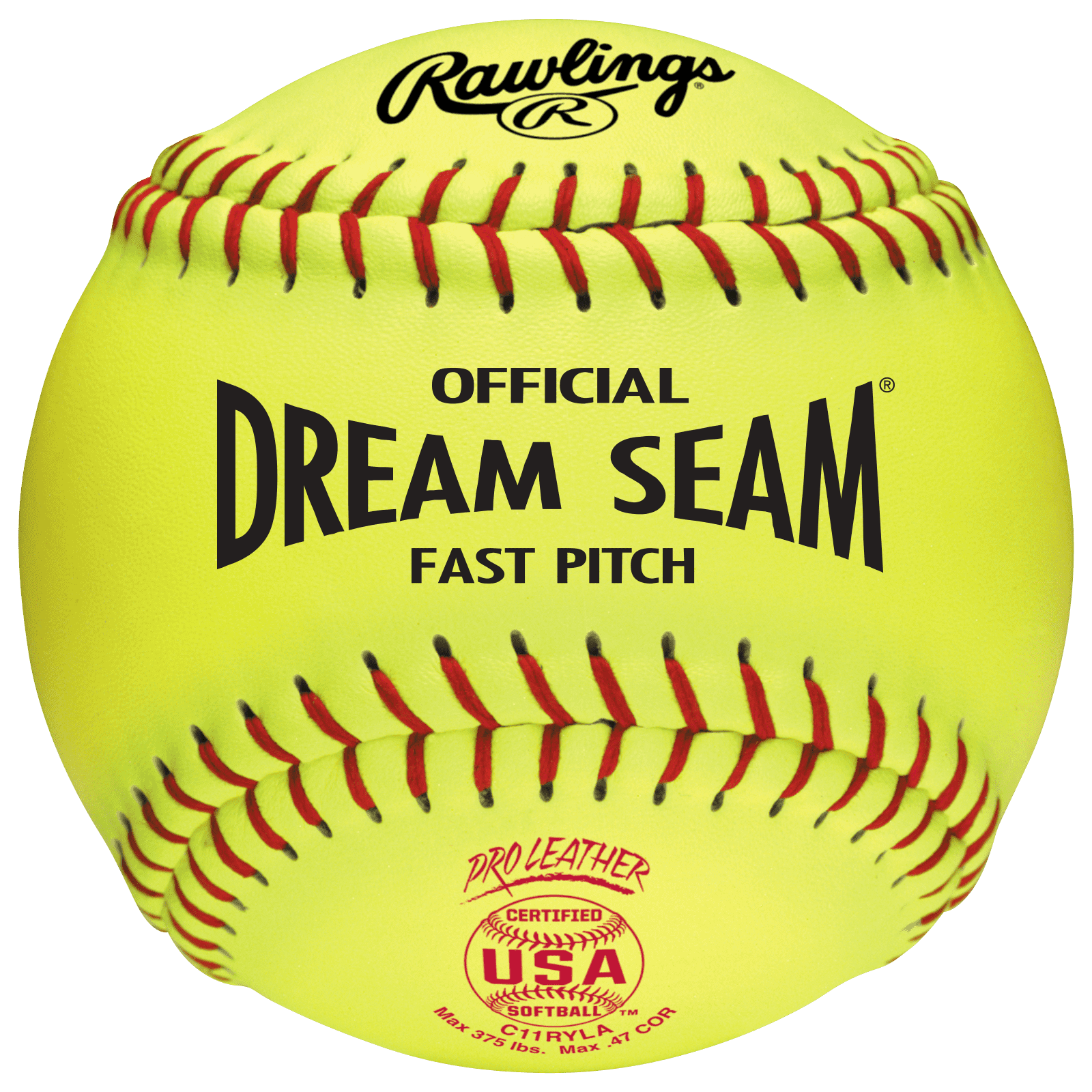 Worth's Official 11" fastpitch softballs has red stitching and are approved for play in the ASA. These Worth's Dream Seam softballs has a raised seam with a high density cork and Pro Leather cover.